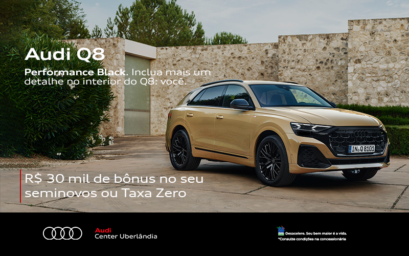 O novo Audi Q8 fascina por suas formas e design. Linha coupé esportiva, interior tecnológico, espaço e esportividade.